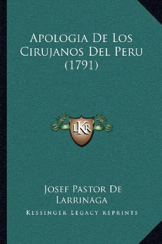 Download Apologia de Los Cirujanos del Peru (1791) pdf Josef Pastor De Larrinaga