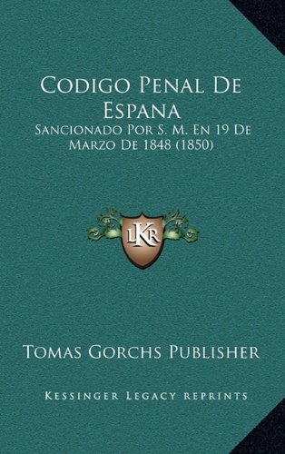 Codigo Penal de Espana: Sancionado Por S. M. En 19 de Marzo de 1848 (1850) libro .pdf Tomas Gorchs Publisher